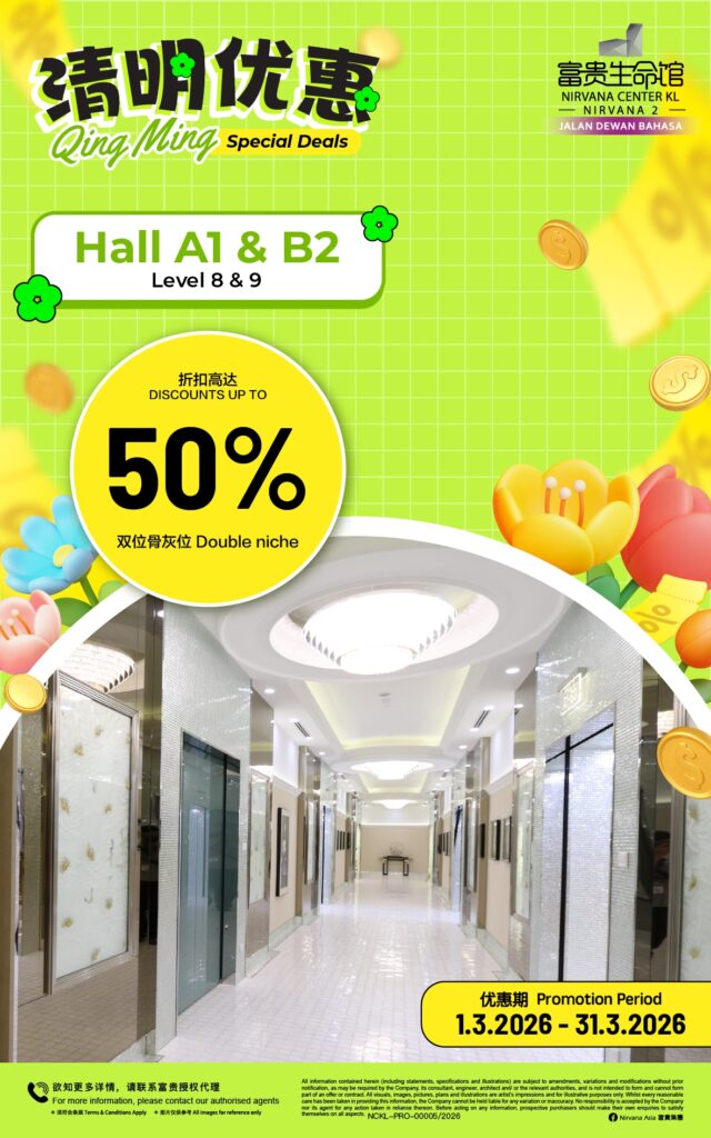 富贵生命馆的追思礼堂空间宽敞,灵堂设置高端投射技术的3D立体光雕,让家属在悼念逝者时留下难忘的回忆。骨灰殿设计奢华内蕴璀璨美感,全冷气设备,营造出永恒圆满的安息地,也是生者和逝者情感交叠、慰藉之处。