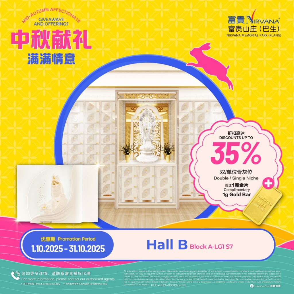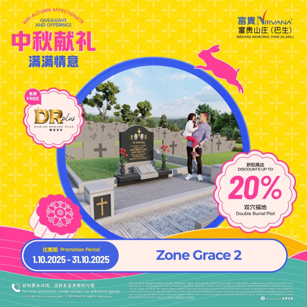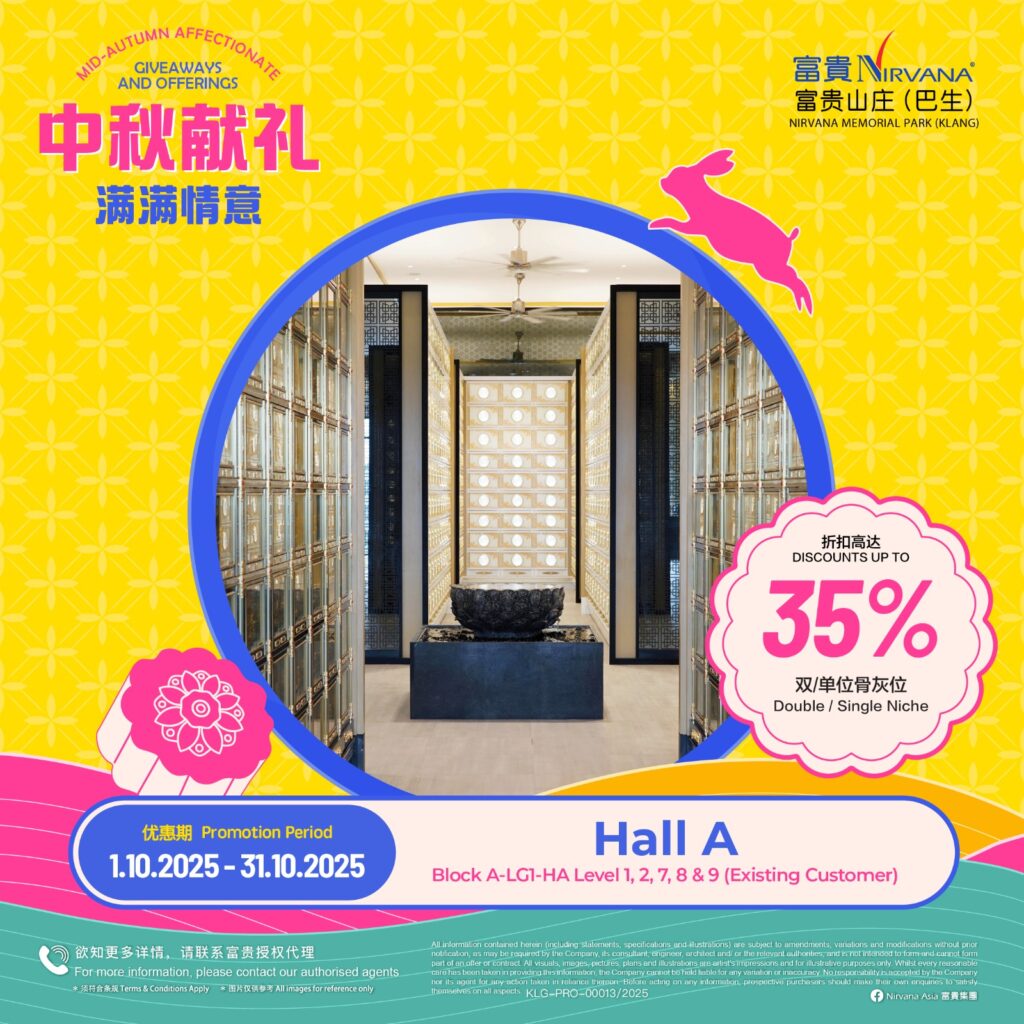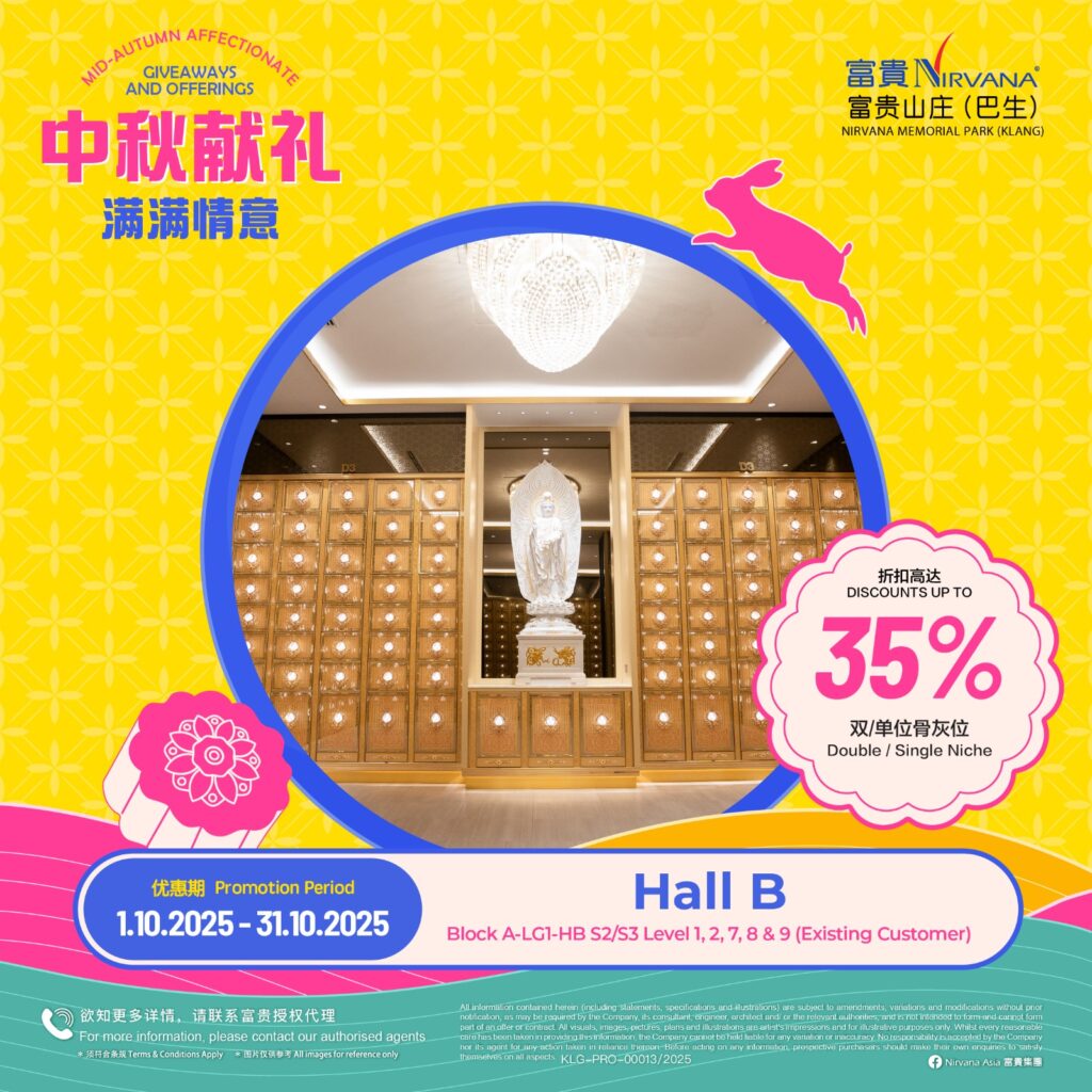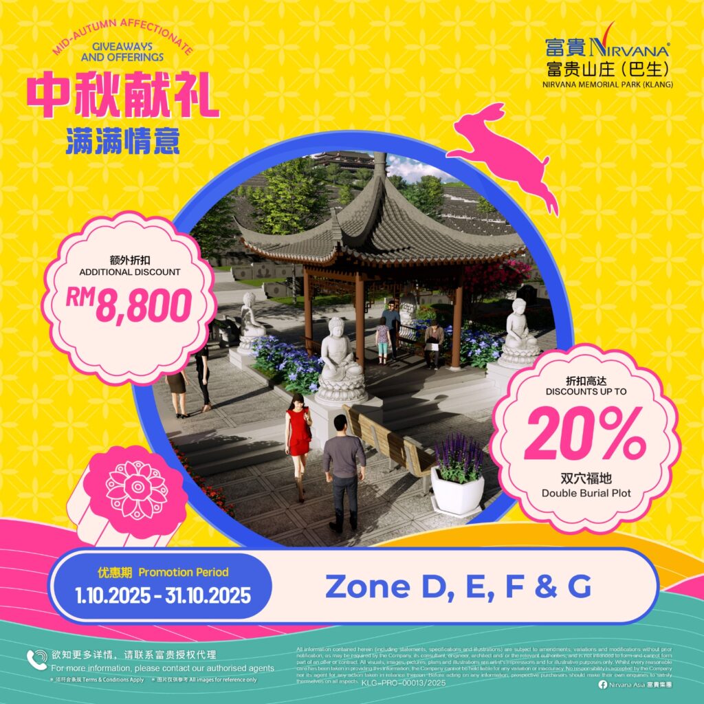 As with all of Nirvana’s memorial parks, this memorial park has a wide array of choices in terms of burial plots and columbaria that cater for multiple denominations. Regardless of spiritual beliefs, filial piety forms the core tenet of Asian society and it is this key value that Nirvana Memorial Park (Klang) looks to in creating a place where everyone can come home to rest and be at peace with loved ones. Like falling leaves returning to the roots, those gone before become the foundation that strengthens the tree in an endless cycle of growth and renewal.