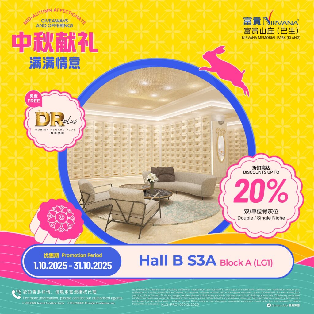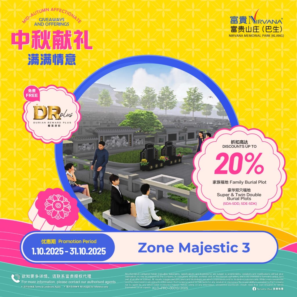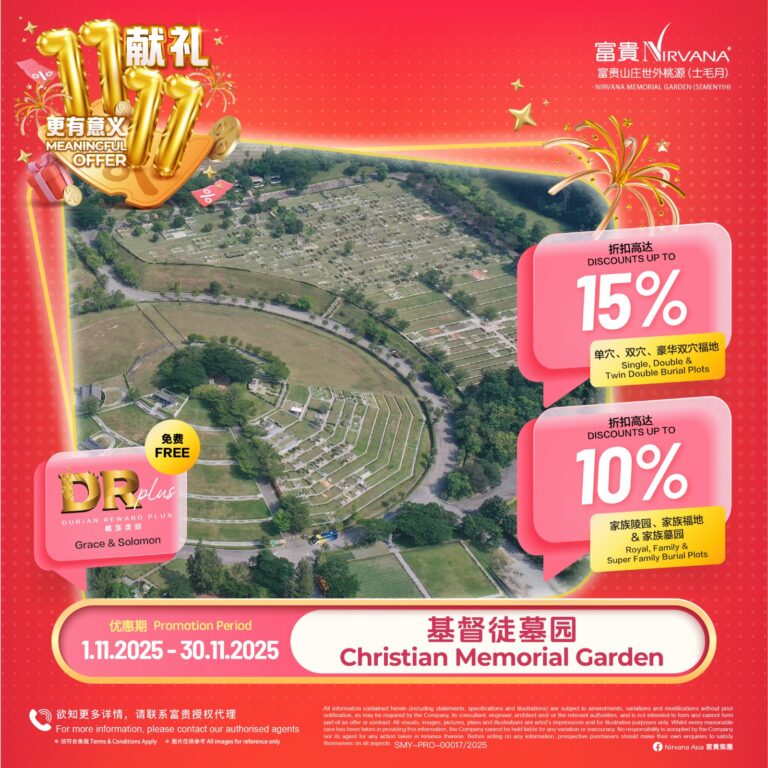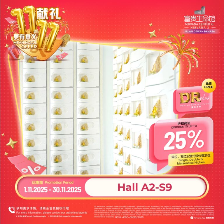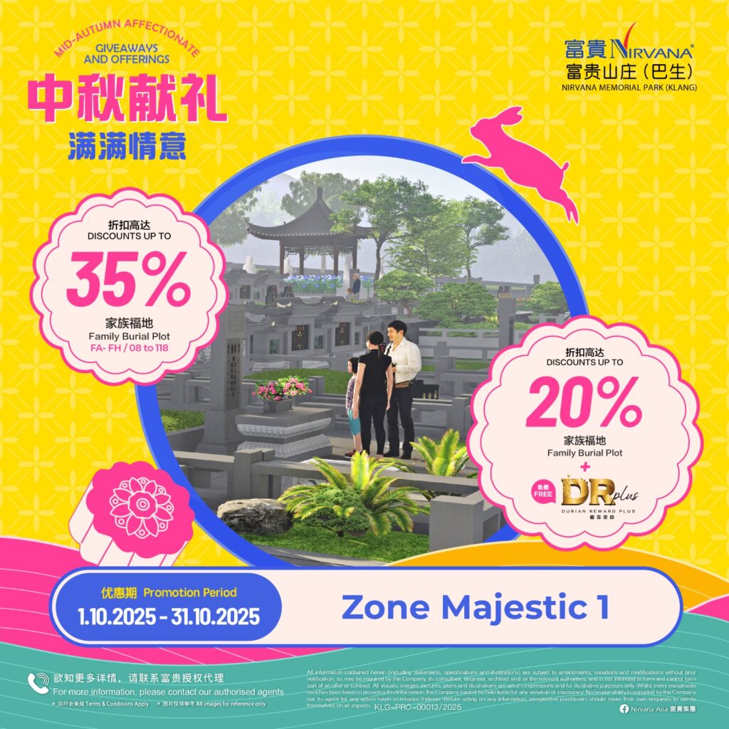 As with all of Nirvana’s memorial parks, this memorial park has a wide array of choices in terms of burial plots and columbaria that cater for multiple denominations. Regardless of spiritual beliefs, filial piety forms the core tenet of Asian society and it is this key value that Nirvana Memorial Park (Klang) looks to in creating a place where everyone can come home to rest and be at peace with loved ones. Like falling leaves returning to the roots, those gone before become the foundation that strengthens the tree in an endless cycle of growth and renewal.