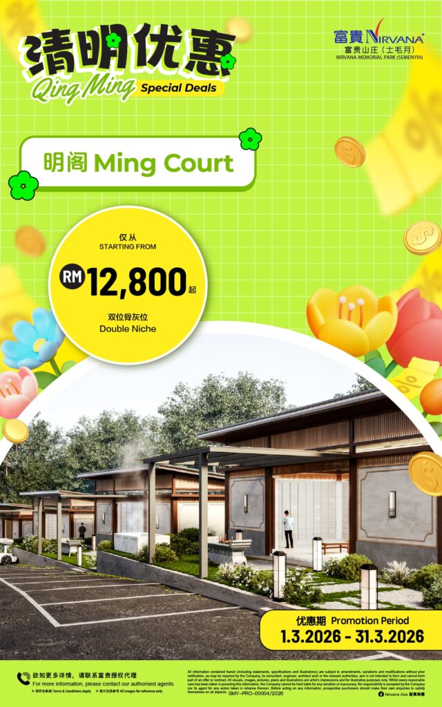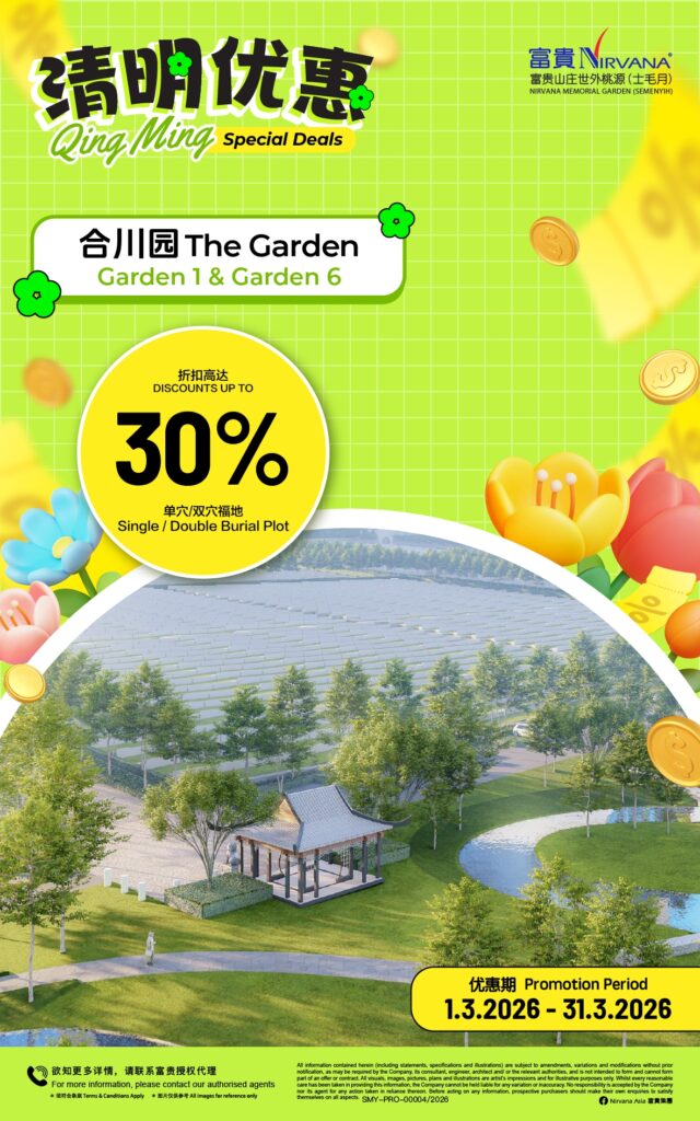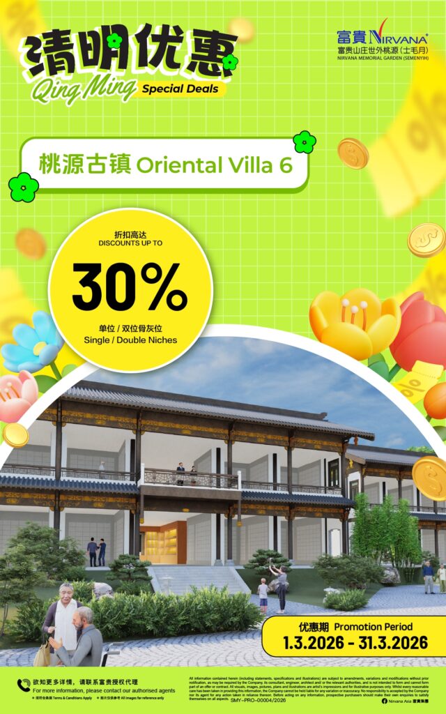 The 642 acre Nirvana Memorial Park (Semenyih) has various thematic burial plots and columbaria that cater to multiple denominations that include the Royal Family Burial Plots, Family Burial Plots, Oriental Villa, Christian Memorial Garden and more. There is even the first ever Pet Memorial Garden in Malaysia – a resting place specially dedicated to celebrating the unique loving bond between people and their animal companions.